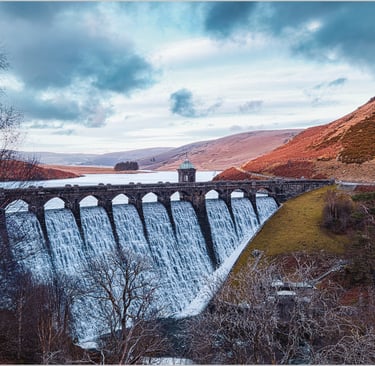Between the 1890s and 1904, the great Victorian dams of Craig Goch, Pen y Garreg, Garreg Ddu and Caban Coch rose across the River Elan. These were not just functional structures but statements of confidence, built from stone quarried on site and designed to last generations. The system of aqueducts and pipelines still carries water by gravity all the 70miles to Birmingham still today.